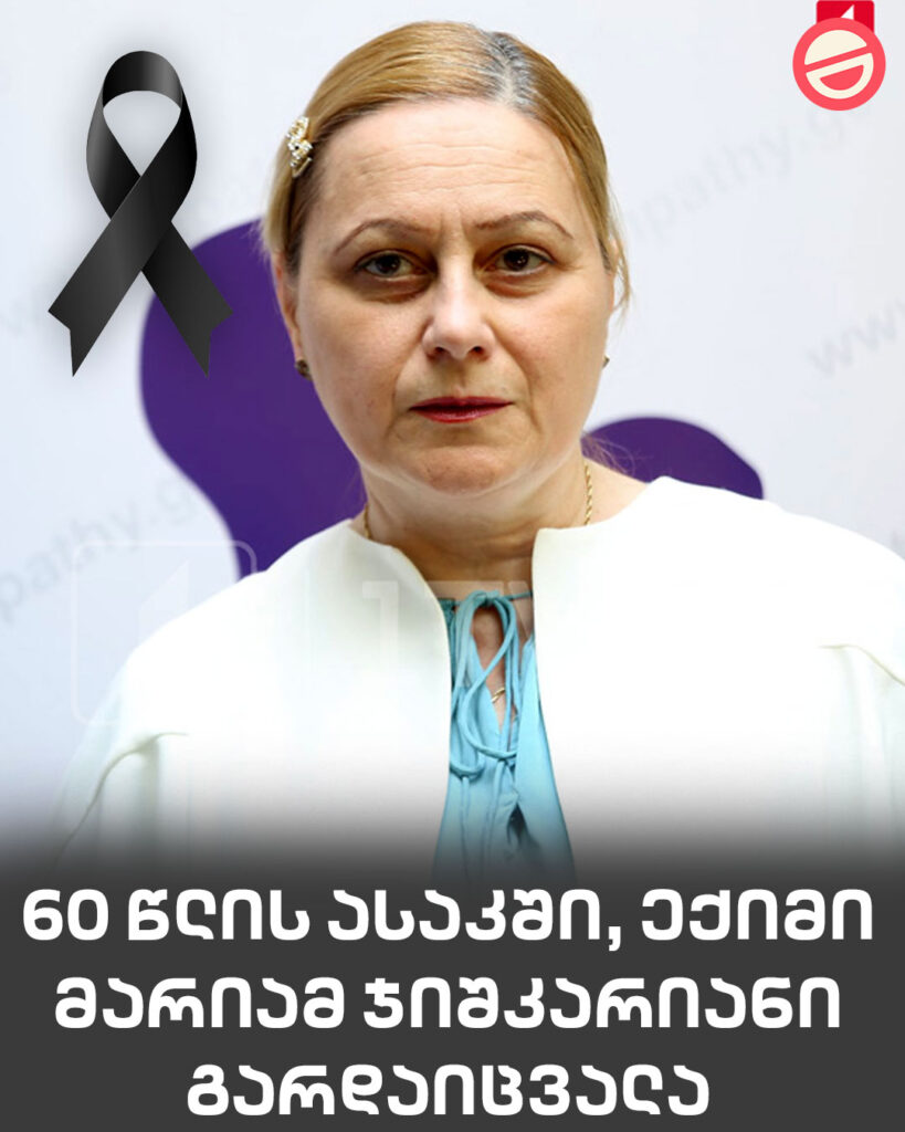 60 წლის ასაკში, სარეაბილიტაციო ცენტრ „ემპათიის“ ხელმძღვანელი, ექიმი მარიამ ჯიშკარიანი გარდაიცვალა | ინფორმაციას სოციალურ ქსელში მისი ახლობლები ავრცელებენ. მისი გარდაცვალების მიზეზი ამ დროისთვის უცნობია