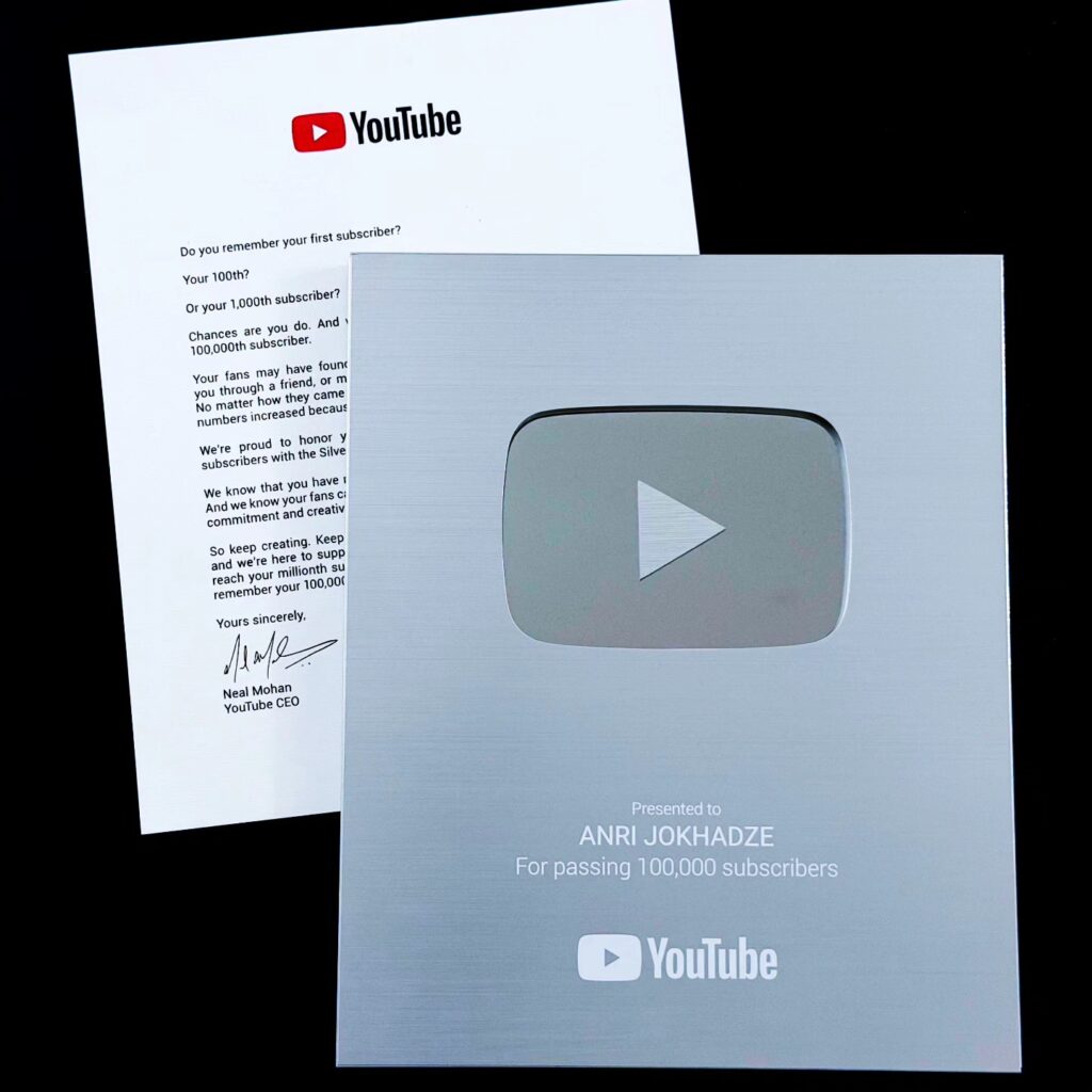 მომღერალი ანრი ჯოხაძე სოციალურ ქსელშ პოსტს აქვეყნებს, რითი ირკვევა რომ Youtube-მა მას საჩუქარი გაუკეთა და 100 000 გამომწერის დაგროვებისათვის ვერცხლის ღილაკი გამოუგზავნა.