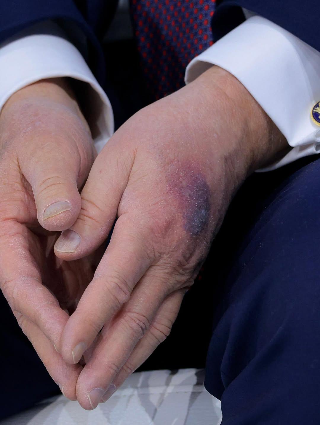 აშშ-ის პრეზიდენტი დონალდ ტრამპი დავოსში ეკონომიკურ სამიტზე იმყოფებოდა, რა დროსაც, მედიას არ გამოჰპარვია შესამჩნევი სილურჯეები მის ხელებზე.